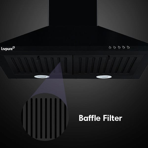 Prevent clogging and unpleasant smell with the Baffle filter attached to the chimney. It traps the grease and oil, ensuring clean odor-free kitchen.