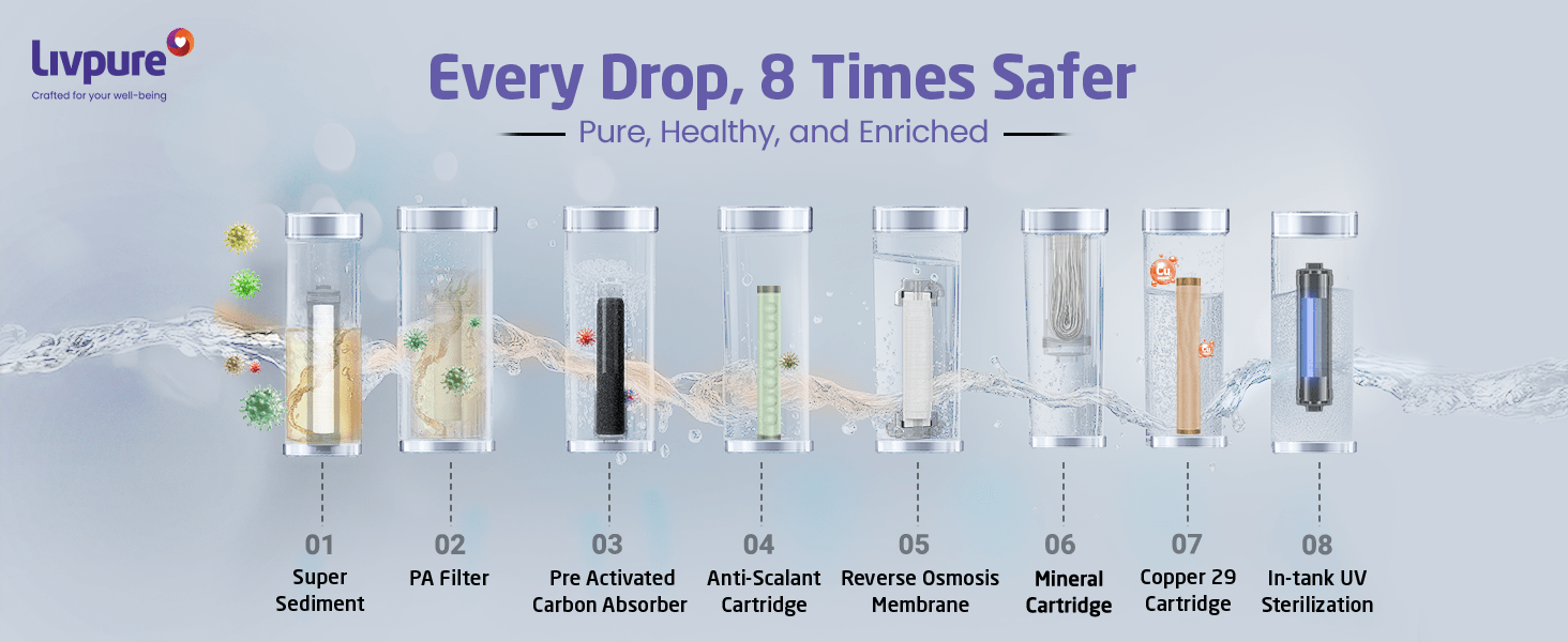 I’ve been using the Livpure water purifier for a while now, and I’m genuinely impressed with its performance. The water quality has significantly improved—it's clear, tastes great, and feels safe for the whole family. The purifier runs quietly, is easy to maintain. Highly recommended for anyone looking for reliable and efficient water purification!